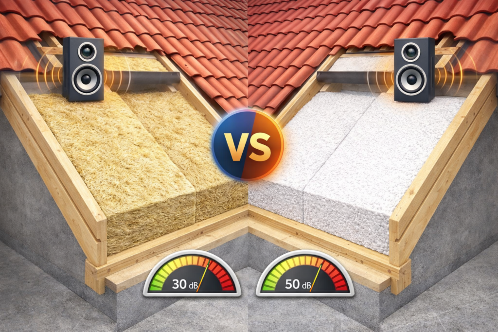 - Ściany działowe i stropy międzykondygnacyjne – tutaj ważnym parametrem jest izolacyjność akustyczna. Aby skutecznie wyciszyć sypialnię lub gabinet, wewnątrz profilu ściany najczęściej ląduje wełna mineralna 15 cm, co pozwala na znaczną redukcję hałasów.